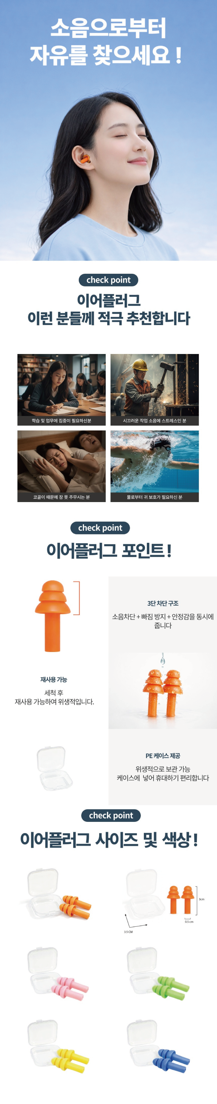 [창원] 실리콘 이어플러그 귀마개/색상랜덤